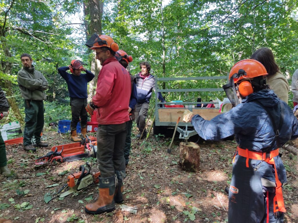 Viendra ensuite le premier chantier-école, en septembre 2022, au cours duquel des arbres de plus grande taille (27m de hauteur) ont été abattus.