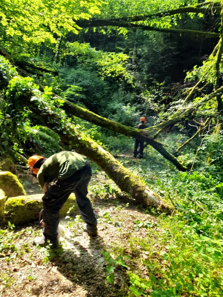 La seconde est une intervention de dégagement sur la même parcelle ou des arbres tombés en travers du chemin empêchaient l’accès .