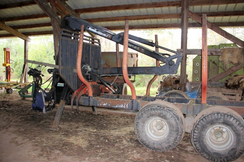Pour entretenir ces espaces agricoles, il faut bien s’équiper. Suite à la tempête de 1999 qui a ravagé le massif forestier, Raphaëlle a acquis une remorque forestière, qui s’attelle à son tracteur. Le grappin hydraulique permet de déplacer des grumes (morceaux de troncs).